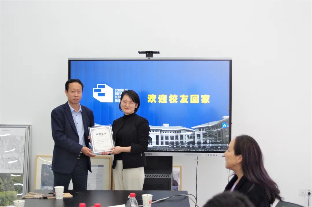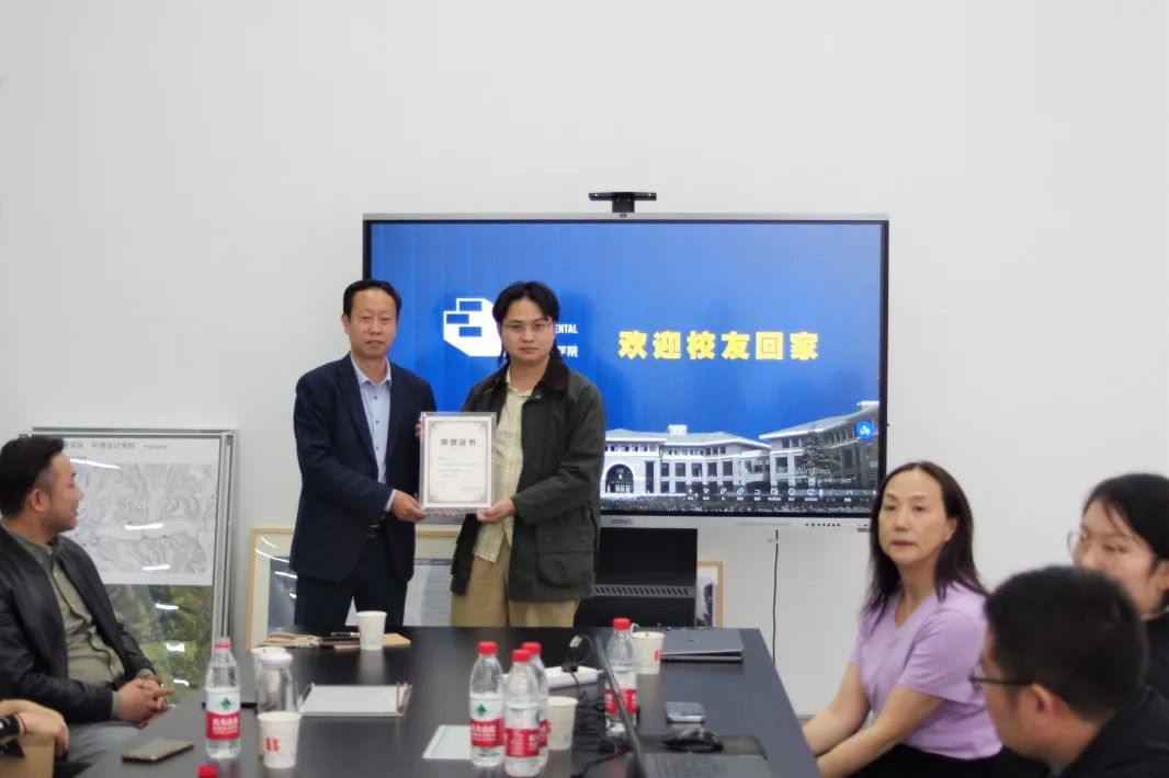 胡俊涛是公司风景园林专业2017届毕业生,毕业后在北京从事艺术策展工作,2020年进入互联网行业,2022年初创办Artverse艺术元宇宙平台,正式进入艺术元宇宙及数字艺术相关领域。会上,两位员工对毕业后的工作经历特别是主持参与过的行业前沿的项目进行了分享,与会领导围绕人才培养、元宇宙与时装周合作项目、智慧校园等方面进行了充分讨论,并向两位员工颁发了“荣誉员工”证书,赠送了员工纪念品。