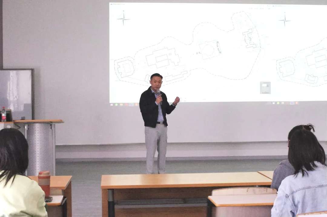 他提出单线设计的表达能够快速提炼设计想法,“单线”是浓缩、抽象的设计表达,简单的手绘方案是最传统的基础方法,同时也是设计构思必不可少的部分。“线性思想”是理性思维的根本方法,设计都是有一根或几根重要的“法线”构成,“法线”可以是直线也可以是曲线。他提出作为设计师“文化自信”是基本,“设计是限定的艺术”,“艺术”不是技术,技术会被取代,而“人的思想”是不会被取代的,所以艺术具有永恒价值。在“总图”的分享中,郭和平建筑师指出“总图”有纵览全局、全要素构思的作用,能够将设计方法和设计元素结合起来体现“天、地、人、合”。
