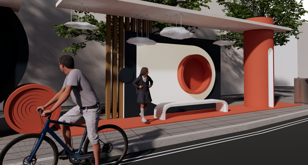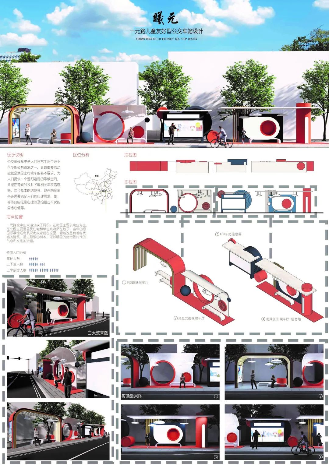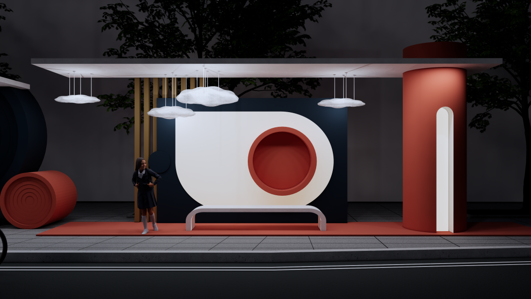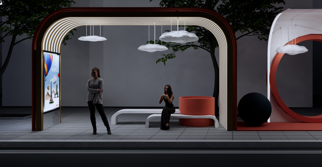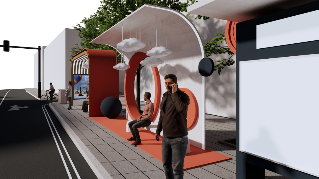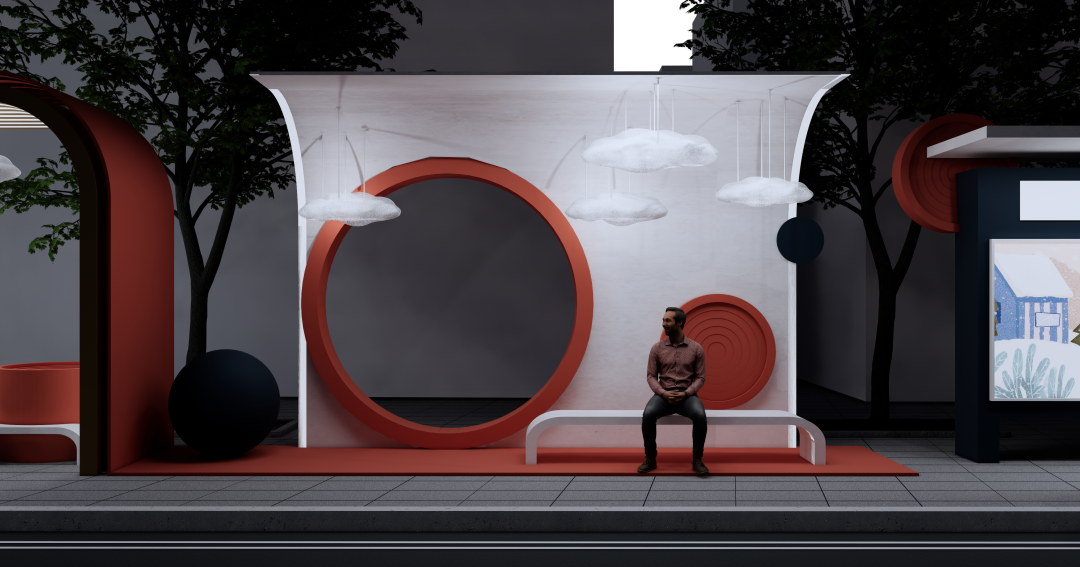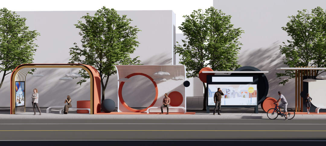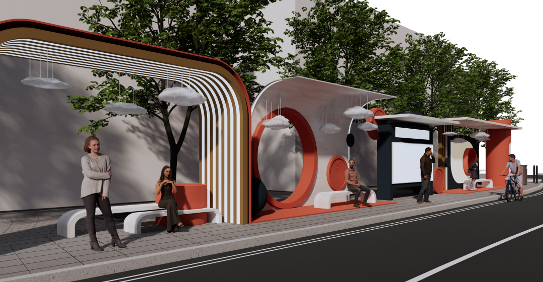 “公交车候车亭是人们日常生活中必不可少的公共设施, 其最重要的功能就是满足出行候车的基本要求,为人们提供遮阳避雨的等候空间, 还能在等候时及时了解相关车次信息等。设计通过对公交车站的需求进行调研,设计了一种新型公交车站候车亭,造型满足人们对审美的要求,同时也能满足环保节能,并且具有可持续发展的潜力。”