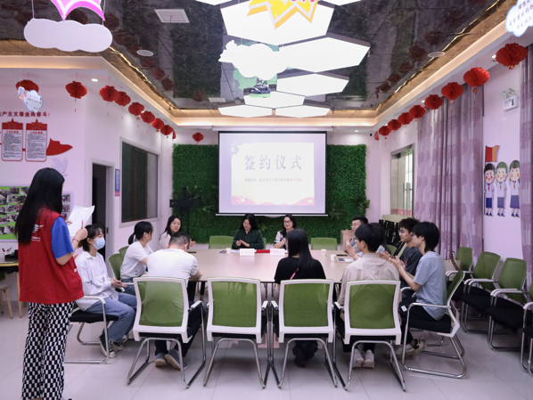 参与本次签约仪式的有金龙社区党支部书记刘凡、副书记周浩、金龙社区工作人员、304永利集团公司党总支部书记谢曦临、分团委书记黄俊杰、辅导员吴子慧及“筑梦”服务队志愿者代表。