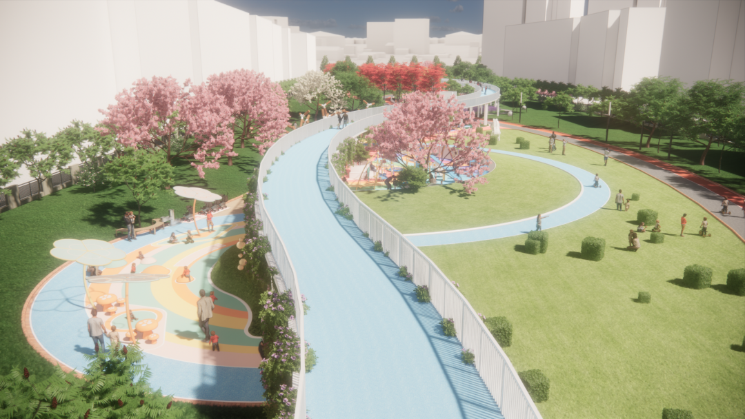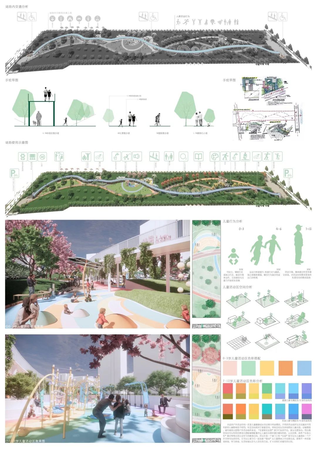 改造设计为儿童服务的社区公共空间同时带入15min城市生活圈概念,项目积极响应儿童友好的政策。