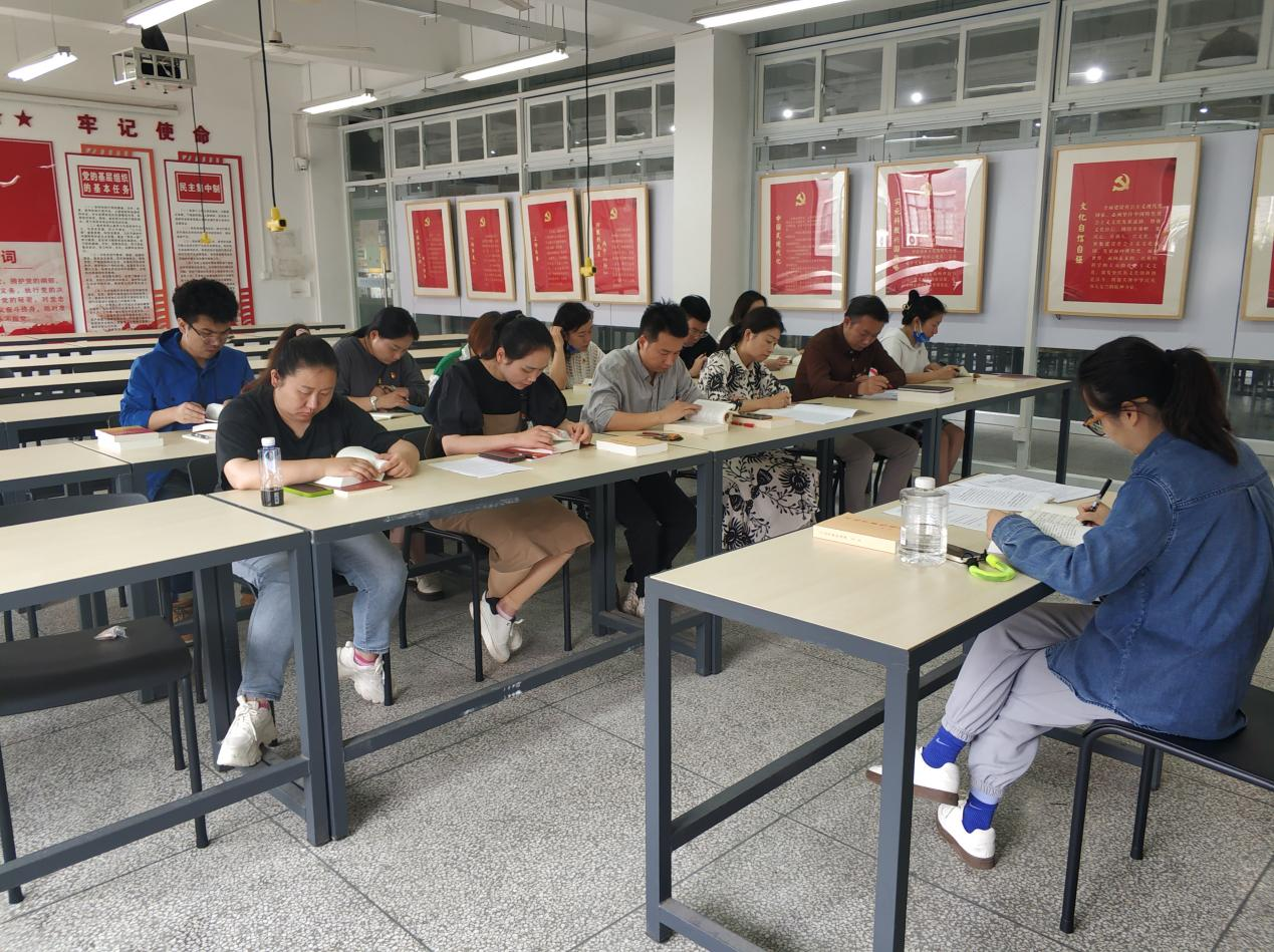 党总支部书记谢曦临领学“习近平出席文化传承发展座谈会并发表重要讲话”,基础课部主任王轩也、党总支部专职组织员兼组织委员肖佩璐、党总支部统战委员曾艳、员工第二党支部书记吴子慧,先后领学了《习近平著作选读》第一卷、《习近平著作选读》第二卷、《高举中国特色社会主义伟大旗帜 为全面建设社会主义现代化国家而团结奋斗--在中国共产党第二十次全国代表大会上的报告》部分章节。