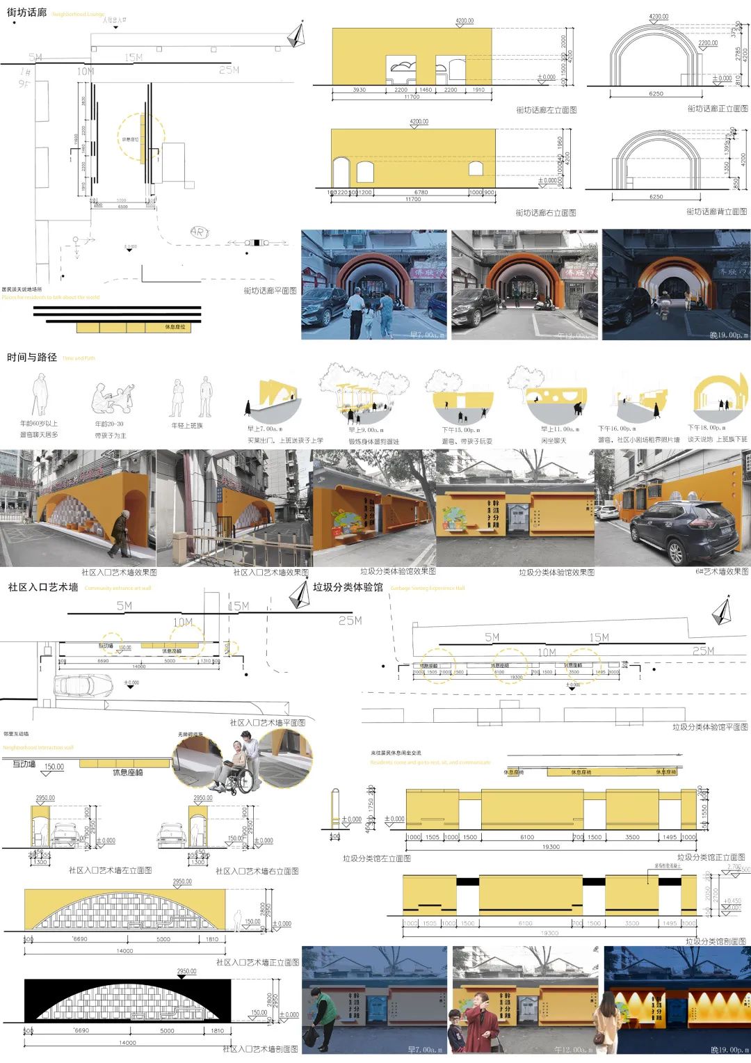 此项目为结合汉口租界文化的特征改造老旧小区,提取拱形元素用拱形进行不同的组合,坚持以人为本的理念,关注老年群体的真正需求,与时俱进,这样既能把传统的历史文化元素保留和传承下来,又能和当代特征相结合,形成个性社区,在老旧小区改造中彰显各城区的个性和特色。