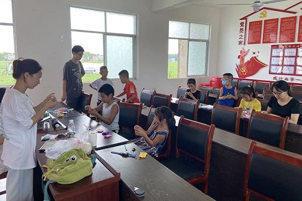 另一件事发生在叶子任小板镇团委副书记期间。当时正值暑期,村里的留守儿童没人照顾,正好又有不少老员工返乡参与社会实践。于是叶子带着几名老员工挨家挨户调研走访,摸排留守儿童基本情况,根据调研结果在村里办起了“留守儿童补习班”。在开班的一个月时间里,叶子和老员工们每天都用心陪伴孩子们,教他们唱歌、跳舞、画画,与孩子建立起了深厚的感情。