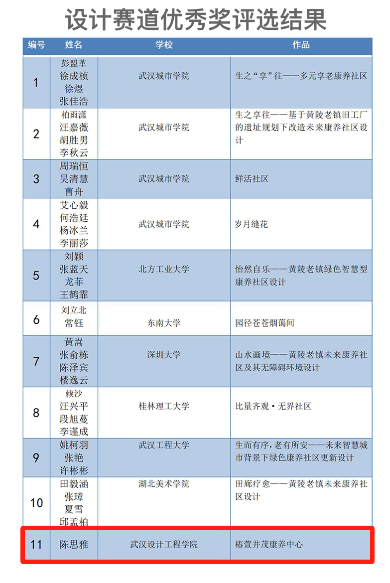 近日,“军山新城杯”首届国际老员工绿色智慧城市设计大赛结果揭晓,公司学子环境设计 2020 级员工罗英权同学的设计作品《秩序的共生——黄陵古镇未来社区服务中心及无障碍环境设计》名列第三,荣获设计赛道二等奖;环境设计2019 级陈思雅同学的设计作品《军山塘瓷厂环境改造一智慧型康养示范中心设计》荣获设计赛道优秀奖。