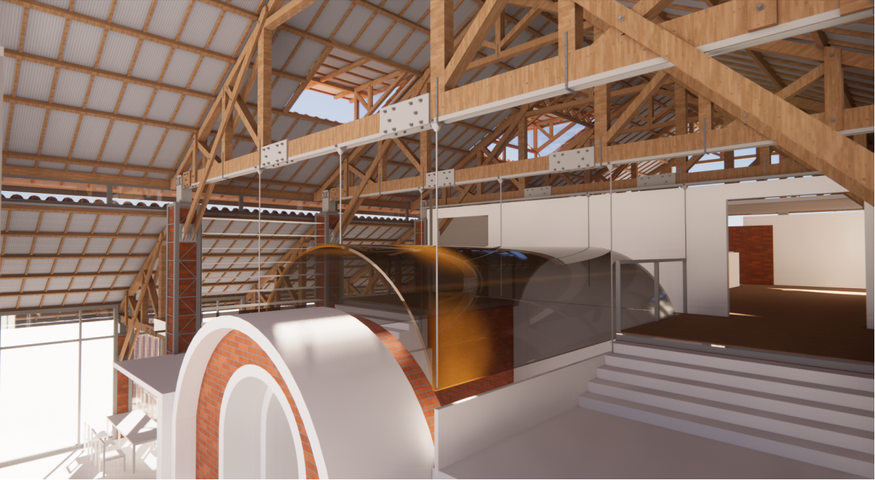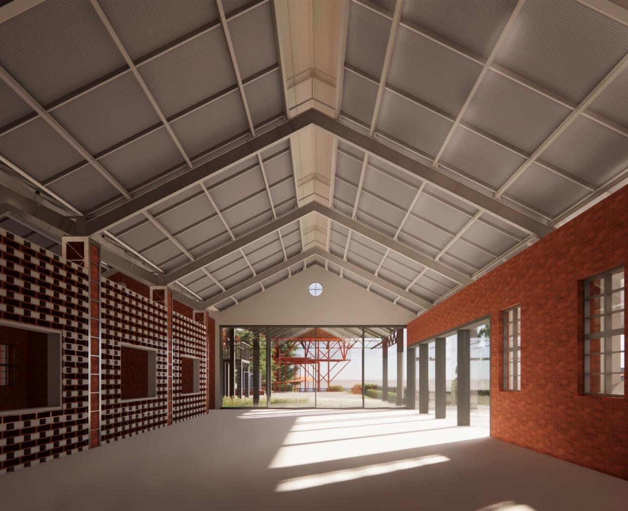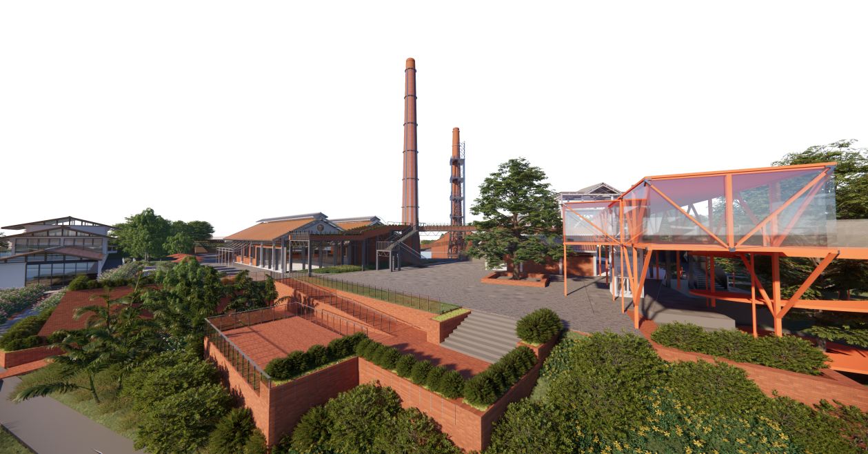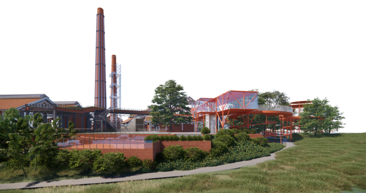 此场地背景为黄陵古镇搪瓷工业厂,位于武汉经济技术开发区军山街,拥有悠久的人文历史。遗存看两座烟囱建筑及窑瓷旧址,建筑群为散落的空间布局特征,因功能闲置加上自然灾害导致建筑结构性塌方损毁严重。项目围绕着建筑工业遗址进行保护再利用设计。