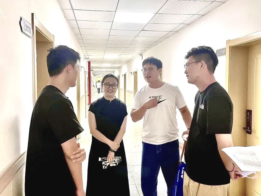 辅导员黄俊杰老师十分关心同学们到校后的适应情况,并嘱咐同学们要积极和辅导员、老师们沟通交流,日常在学习上互帮互助,尽快融入集体,建立起良好融洽的人际关系。辅导员李帅老师在与员工们的交谈中强调,宿舍作为员工学习生活的重要场所之一,需要同学们悉心爱护,共同维护,在日常生活中要加强自我管理,以积极的生活态度养成健康文明、乐观向上的优良习惯。辅导员李闯老师走进寝室与同学们亲切交谈,勉励同学们能够珍惜在校时光,充分利用课余时间开展各种有益身心健康的科研、文体活动,认真规划好自己的老员工活。
