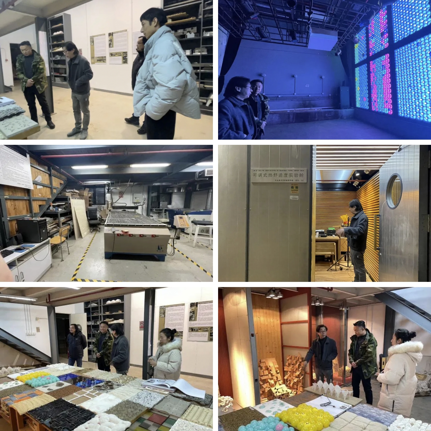 在中央美术公司,叶砚蒇一行参观建筑公司教学基础设施、建筑光学实验室、建筑物理实验室、木工工作实验室、材料与构造实验室、数字空间与虚拟现实实验室、数字化建造实验室等。在座谈会上中央美术公司建筑公司副经理周宇舫、建筑学副主任、数字技术研究中心主任王文栋介绍了相关实验室在教学中的作用和运行方式,分享了团队建设的见解及实践教学的经验举措。就虚拟现实技术及数字化教学进行交流。