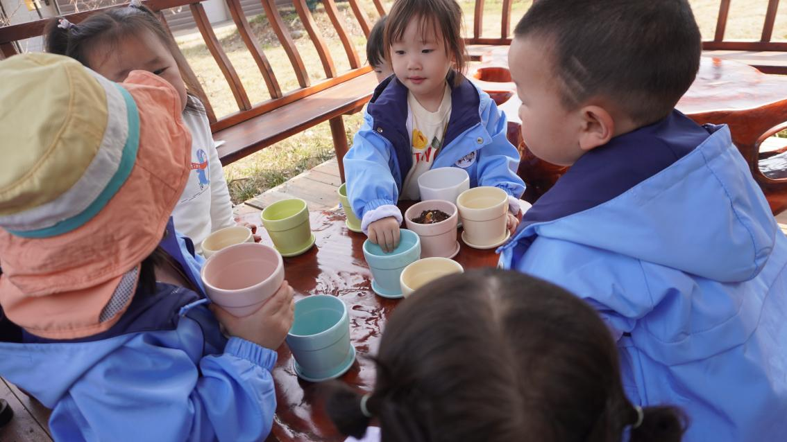 活动最后我们开展个人小花苗栽种手工活动,利用花盆、土、郁金香种球培育小朋友自己的盆栽并带回家继续进行养护。