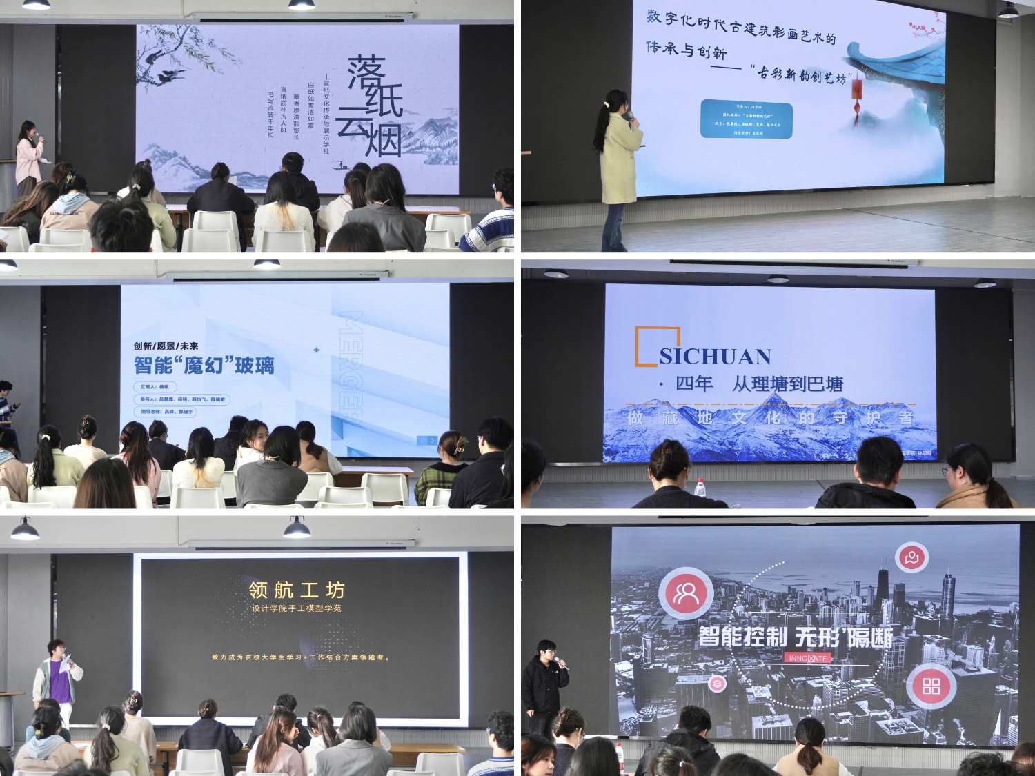 各组项目负责人依次上台进行了8分钟PPT路演展示与现场答辩。评委老师对每个项目进行了针对性的点评及提问,从项目的创新性、市场潜力、可实施性等多个维度进行了探究并提出建议,在PPT制作上也做出了修改意见。