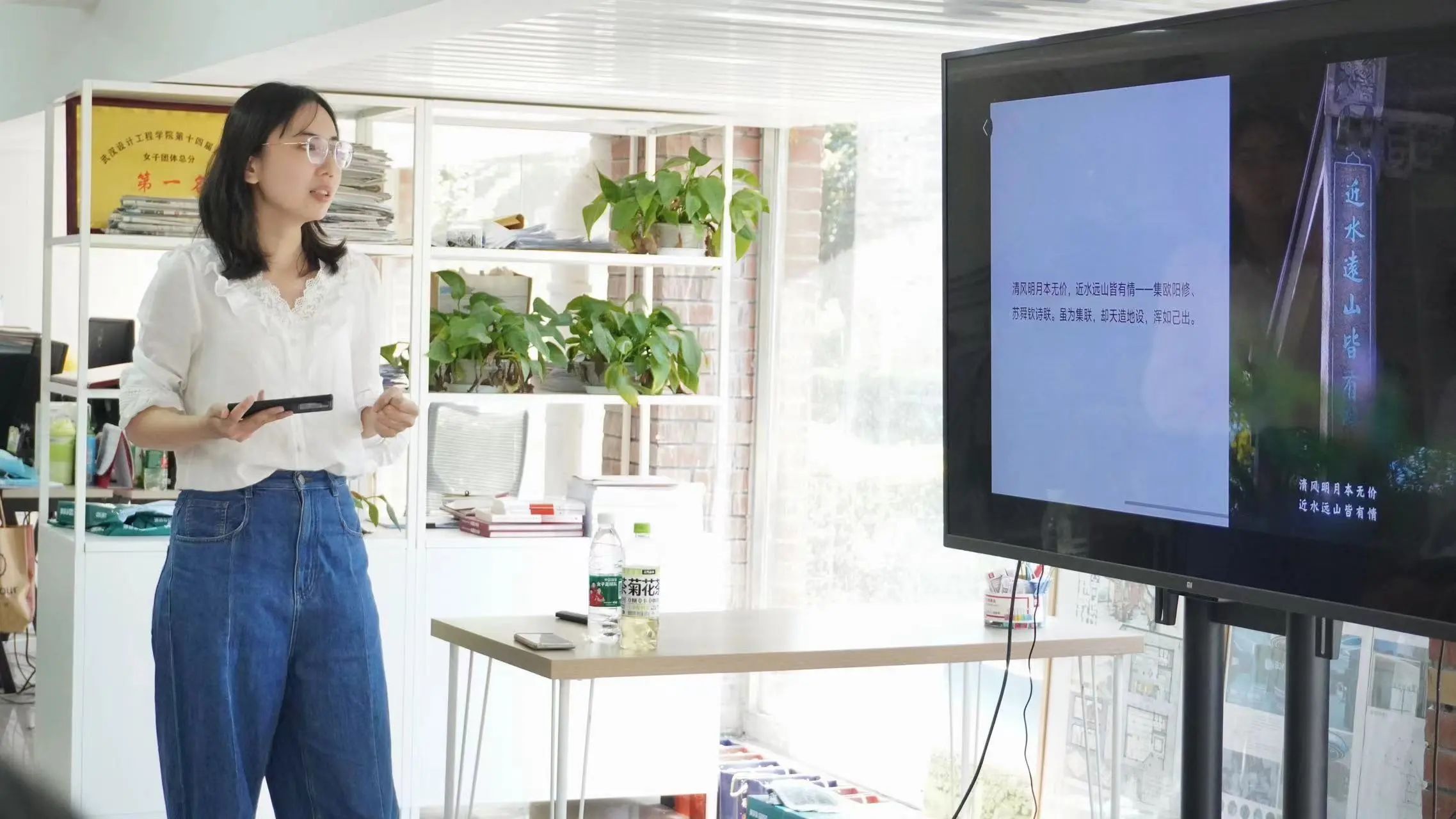最后,黄老师精选了多首描绘园林之美的诗词与同学们共赏,让同学们领悟情感对于园林艺术创作的重要性,体会诗文兴情以造园的文化内涵。她提及“清风明月本无价,近水远山皆有情”这一集联,虽非一人之作,却浑然天成,意境深远。又引“耦园住佳偶,城曲筑诗城”来描绘园林中隐逸生活的诗意与和谐。