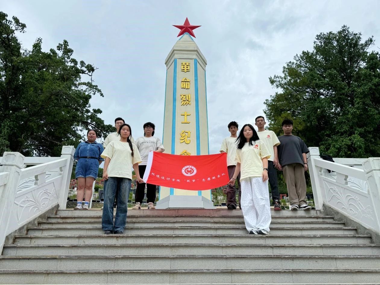 图为队员们在红军山上革命烈士纪念碑前合照