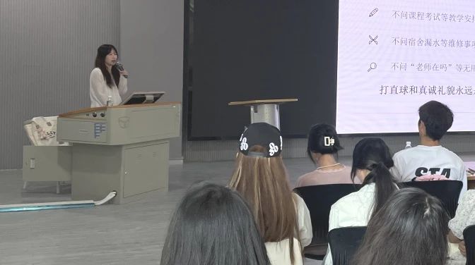 通过心理健康教育、员工管理规定教育、图书馆入馆教育等方式,加强校规校纪教育,引导新生做到懂规矩、守纪律、不逾矩。辅导员郭晓宇、向鋆鹭老师围绕以上内容对新生展开教育活动,让新生们能够更好地适应老员工活,树立正确的价值观和行为准则,为未来的发展打下坚实的基础。