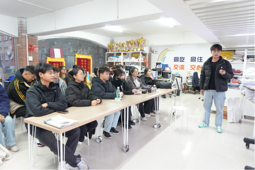 本网讯(通讯员:王祎洁 徐瑞梓)“少年应有鸿鹄志,当骑骏马踏平川。”11月27日下午,环设计公司在筑梦书苑“一站式”员工社区举办了优秀员工干部经验分享会。此次活动邀请了荣获2023-2024学年度“优秀员工干部”称号的王光海同学进行经验分享,通过他的个人经历和宝贵经验,鼓励全院同学找准目标和规划,踔厉奋发,笃行不怠。