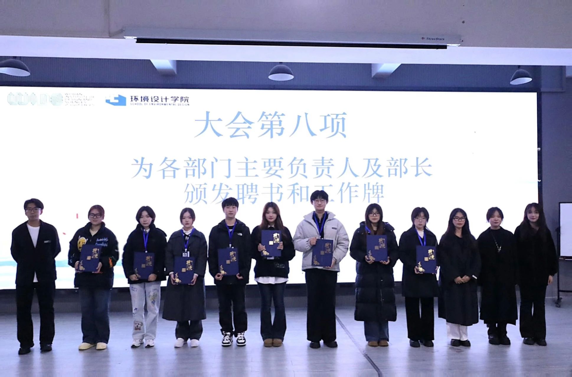 随后,分团委员工会主席团成员为各部门主要负责人颁发聘书和工作牌,各部门负责人周天畅、黄阳、田淇文、王子墨、姚佳灿、张佳一、高玉婵、张嘉诚同学依次上台发言,言语中充满了对做好团学工作的坚定信心,同时也对新一届员工会成员寄予了殷切期望,表达了携手共进、共创佳绩的决心。紧接着,各部门负责人为部门成员颁发聘书及工作证,标志着新一届员工会团队的正式组建。