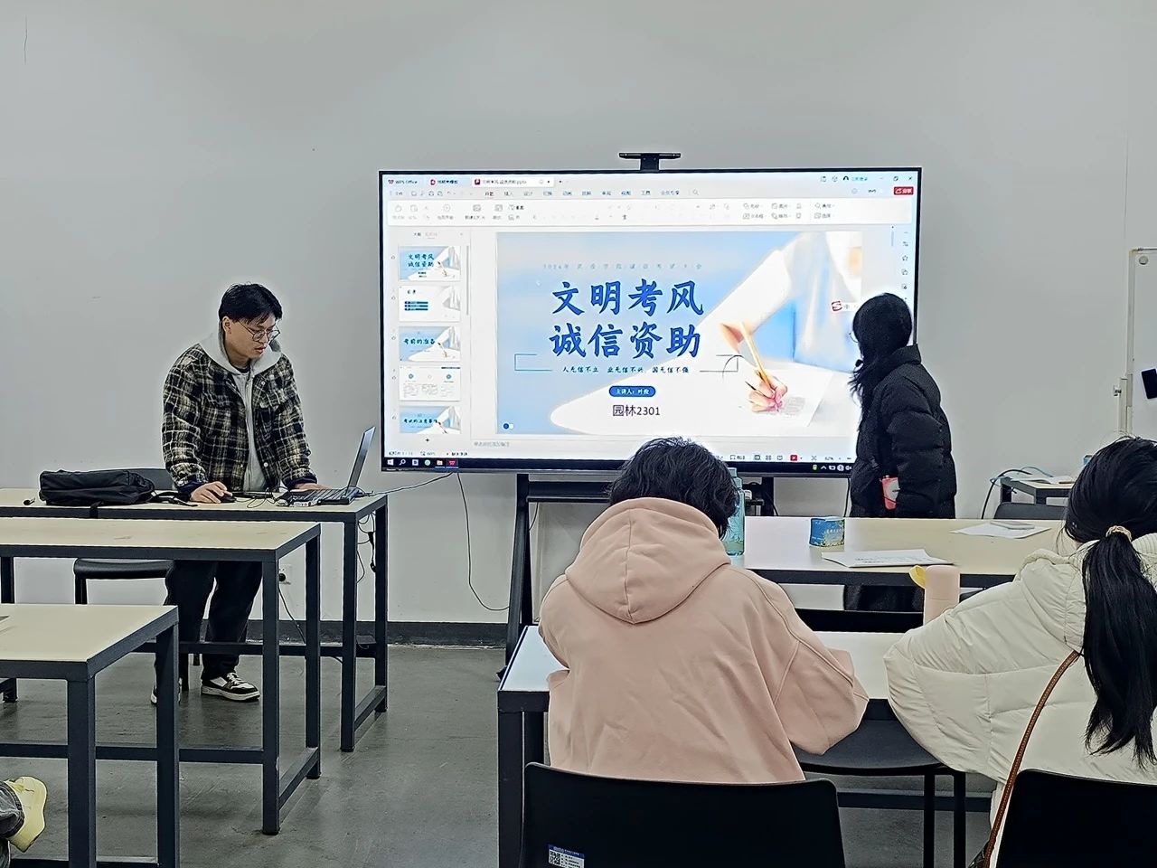 班会由辅导员、各班班主任主持。会上,辅导员们首先强调了诚信考试的重要性,指出诚信是做人之本,是老员工应具备的基本品质。在考试中,诚信不仅是对自己学习成果的检验,更是对他人学习权利的尊重,每位同学都应自觉遵守考试纪律,杜绝任何作弊行为。