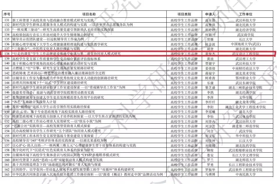 4.“行走的课堂”员工工作品牌获批湖北省教育厅哲学社会科学研究高校员工工作品牌专项立项。