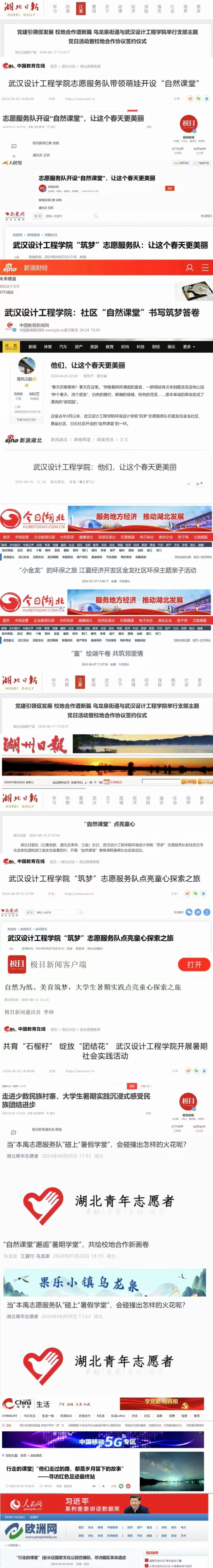 5.筑梦志愿服务队获“本禹湖北省本禹志愿服务队”命名;获评金龙社区“最美高校志愿服务队”;被校外主流媒体报道23次;开展自然课堂等志愿服务项目24次。