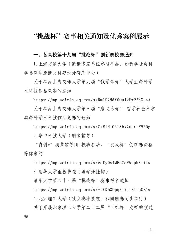附件二:“挑战杯”赛事相关通知及优秀案例展示