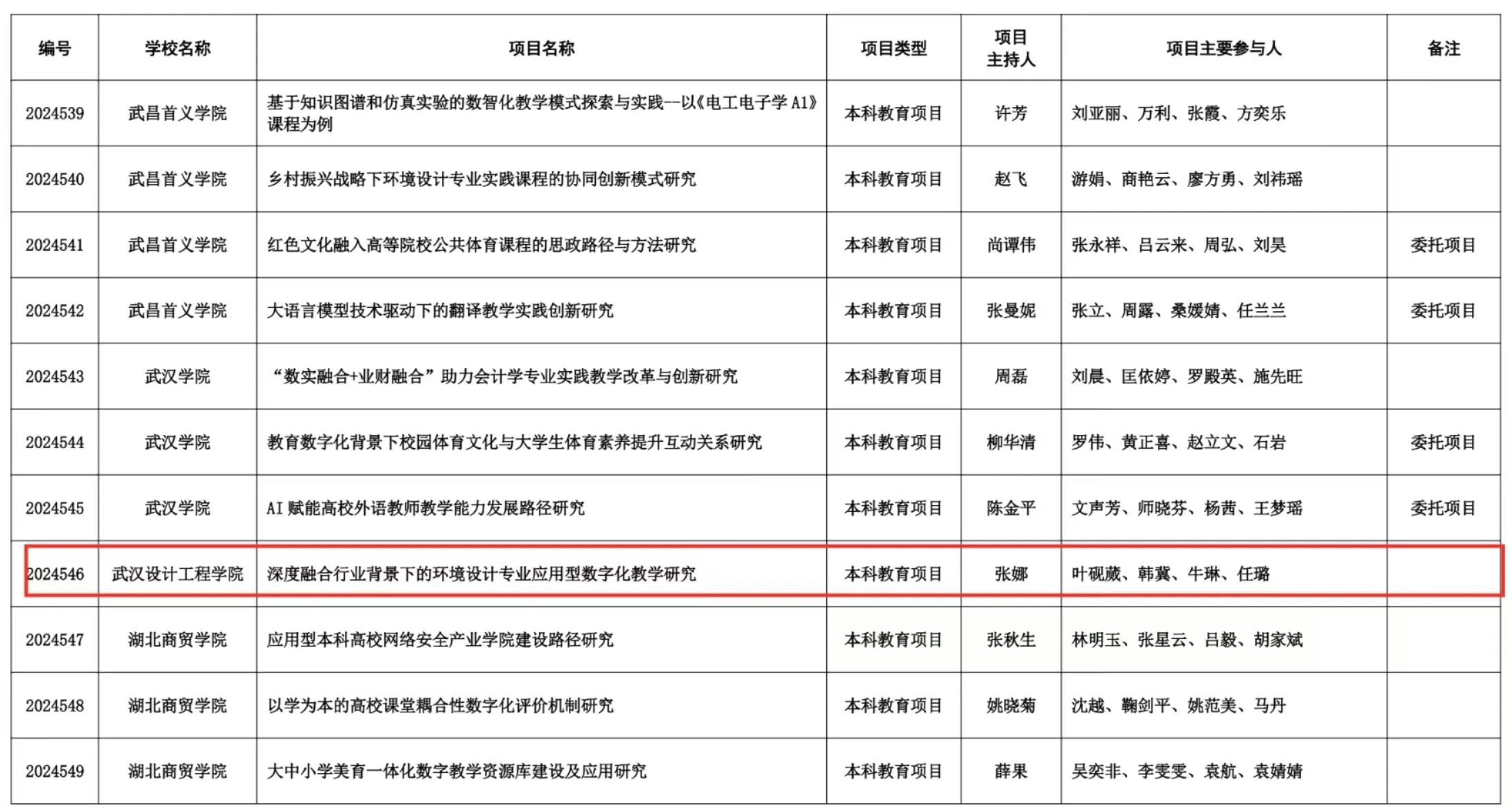 12月25日,省教育厅发布2024年湖北本科高校省级教学改革研究项目,公司《深度融合行业背景下的环境设计专业应用型数字化教学研究》项目成功获批。