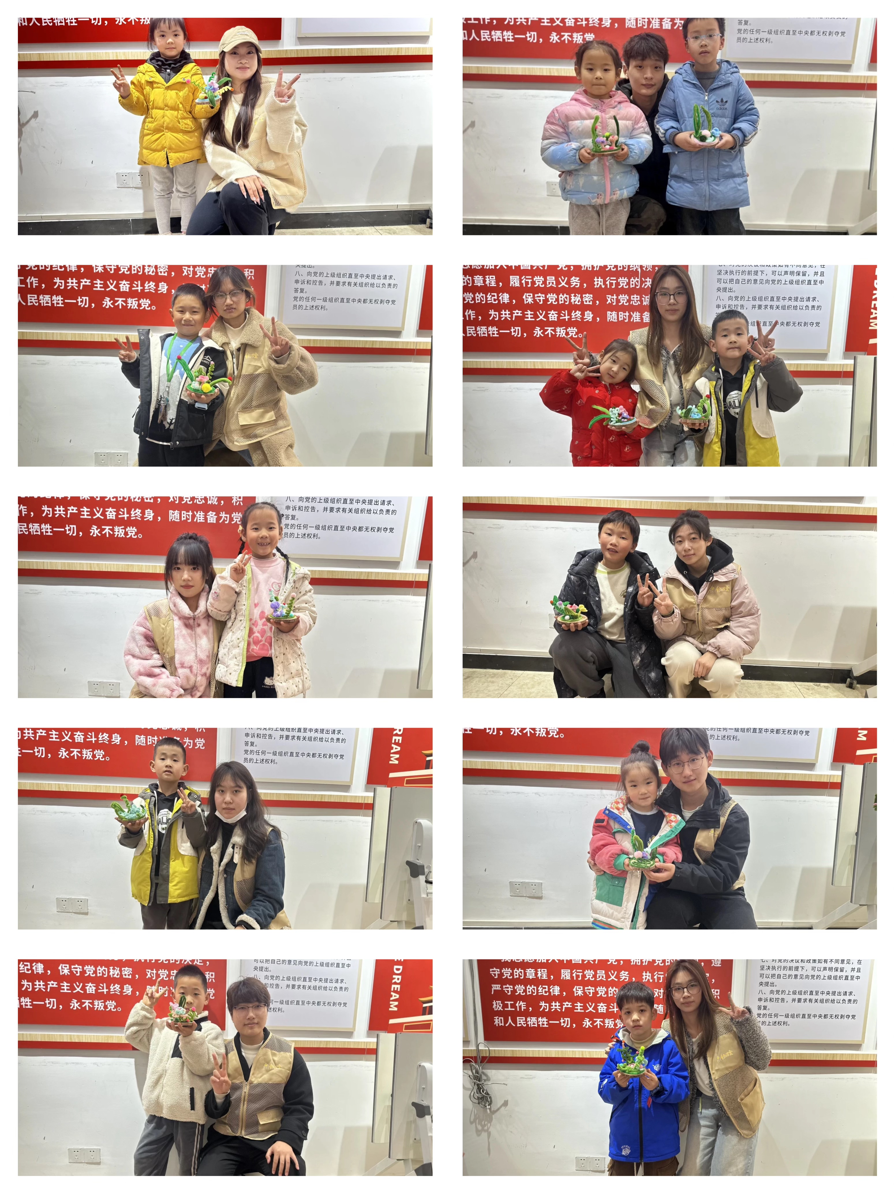 最后,志愿者协助小朋友们完成了最后的装饰工作,并将这些精美的扭扭棒植物叶片展示在社区的活动区域,成为了一道亮丽的风景线。孩子们看着自己的作品被展示出来,脸上洋溢着自豪与喜悦的笑容,他们相互欣赏、交流,分享着创作过程中的趣事与感悟。