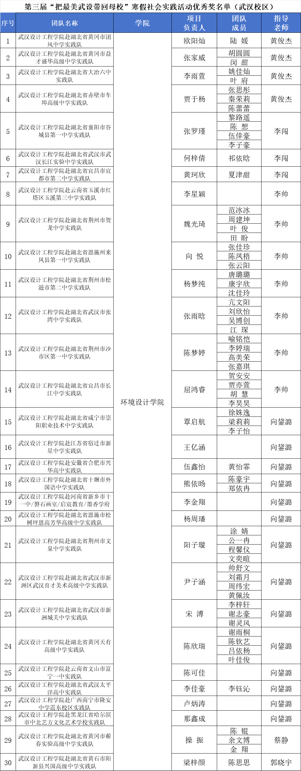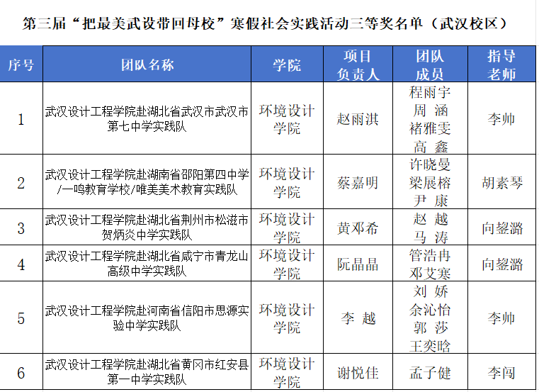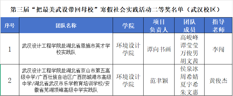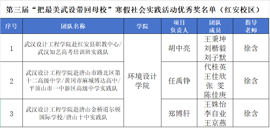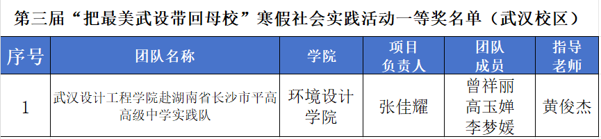 本网讯(通讯员:黄俊杰)3月25日—26日,第三届“把最美武设带回母校”寒假社会实践活动决赛分别在武汉及红安校区顺利举行。304永利集团师生团队凭借优异表现,最终荣获一等奖1项,二等奖2项,三等奖6项,优秀奖33项,获奖总数位居全校前列。