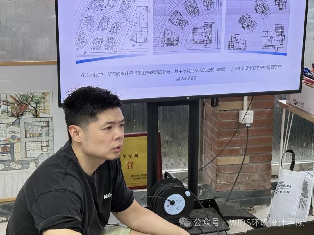 分享会上,江老师以设计落地性为切入点,强调设计师的核心职责不仅是绘制图纸,更要输出涵盖全流程的系统性解决方案。通过对比校园设计作业与实际工程项目,他指出:员工在课堂上的设计多聚焦美学表达与课程要求,而真实项目则必须严格遵循行业标准与施工规范。这一剖析让同学们清晰认识到理论与实践的差异,为后续专业学习树立更务实的目标。