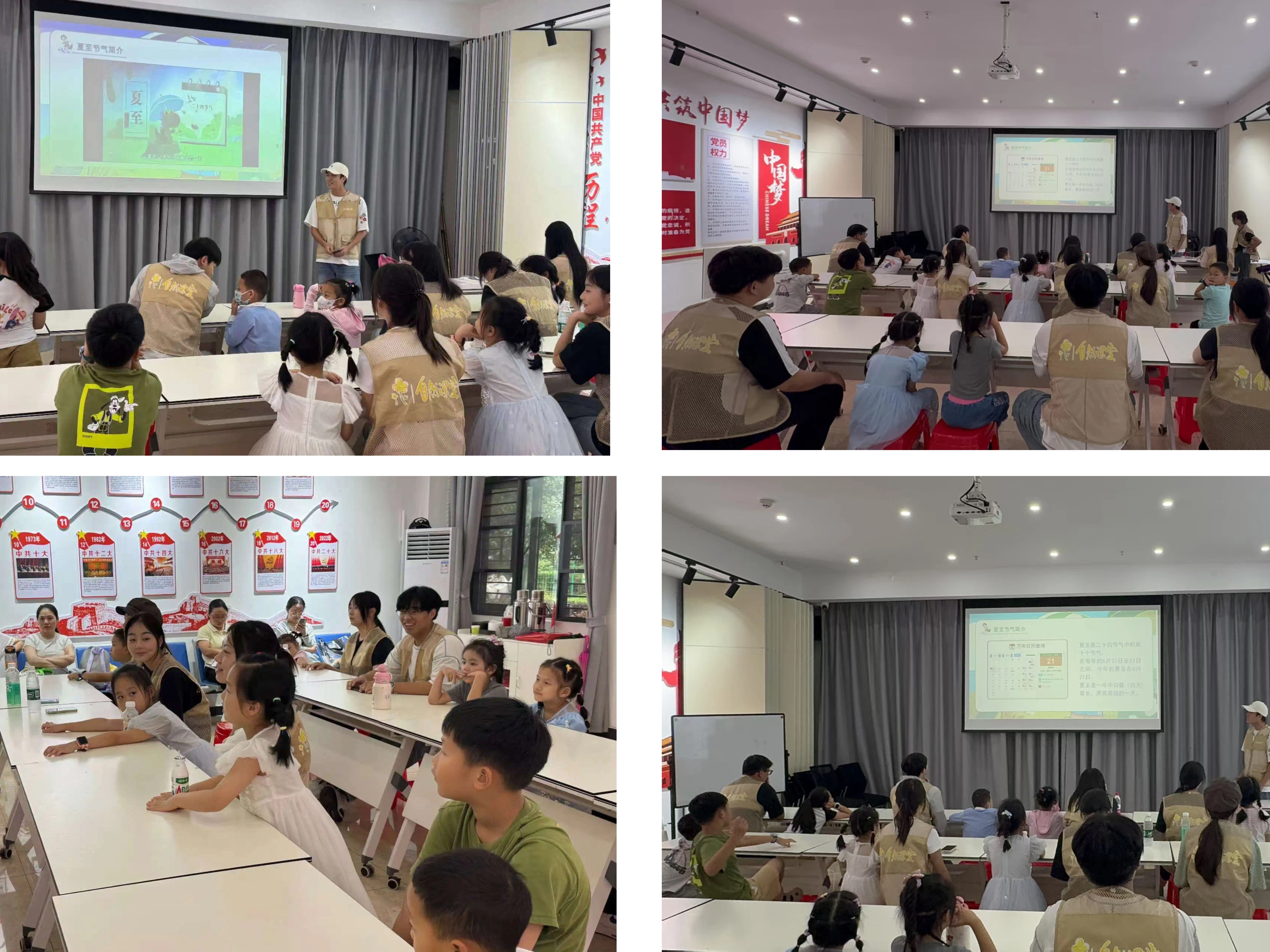活动开场,志愿者们为孩子们精心呈现了一段唯美的夏至主题短片。随着悠扬的背景音乐响起,屏幕上展现出盛夏的壮美画卷:荷塘里,粉嫩的荷花迎风轻舞,晶莹的露珠在荷叶上滚动,宛如大自然精心雕琢的珍珠。孩子们瞬间被这生动的画面吸引,一双双眼睛亮晶晶地盯着屏幕,小脸上写满惊叹,仿佛置身于那个阳光灿烂、生机勃勃的夏至童话中。