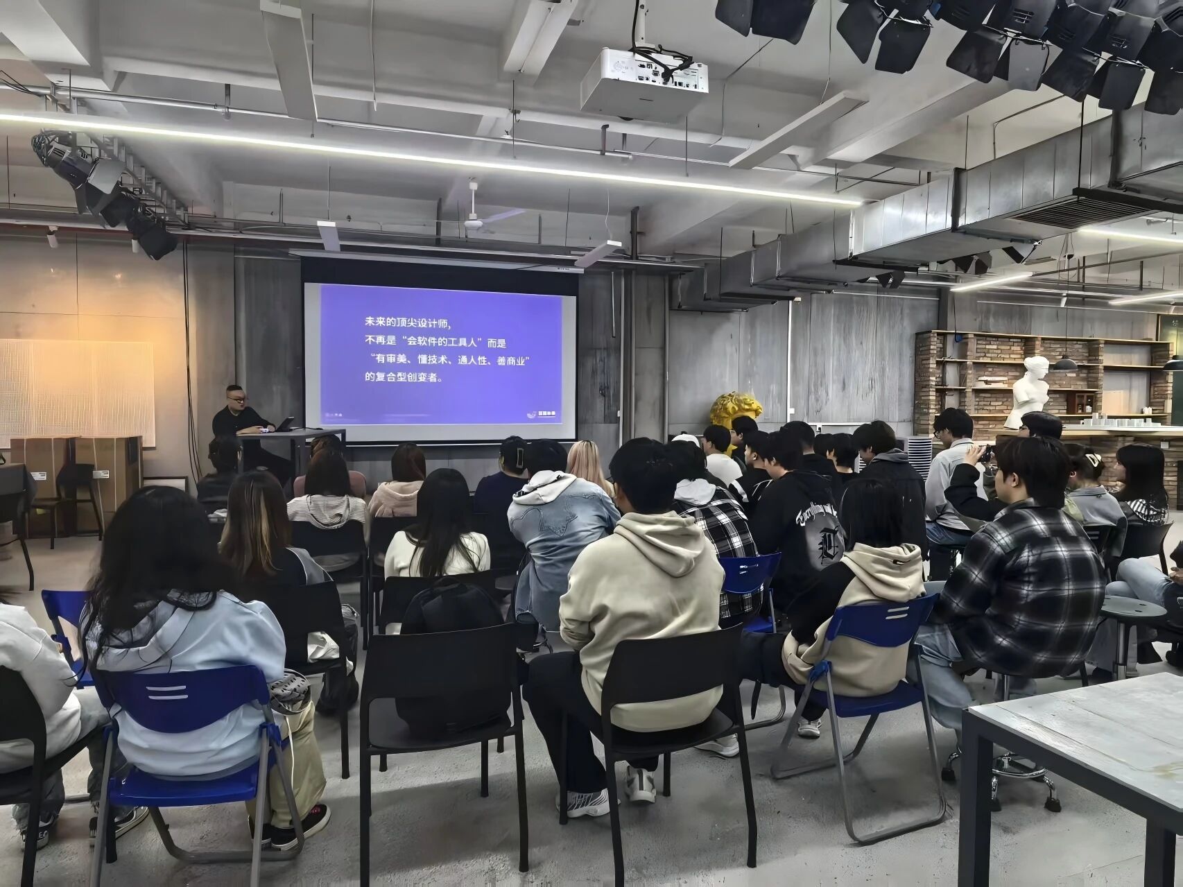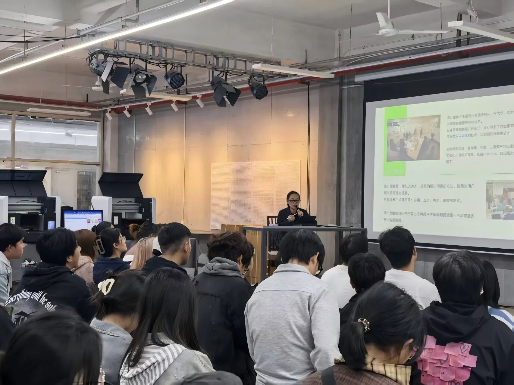 2025年11月4日下午16点50分,深圳市蓝鲸未来科技有限公司应邀莅临公司,在模型制作实验室开展了一场关于“激光造物”的交流活动,本次活动吸引了环境设计专业和风景园林专业的40多名同学参加,现场气氛热烈,交流深入。