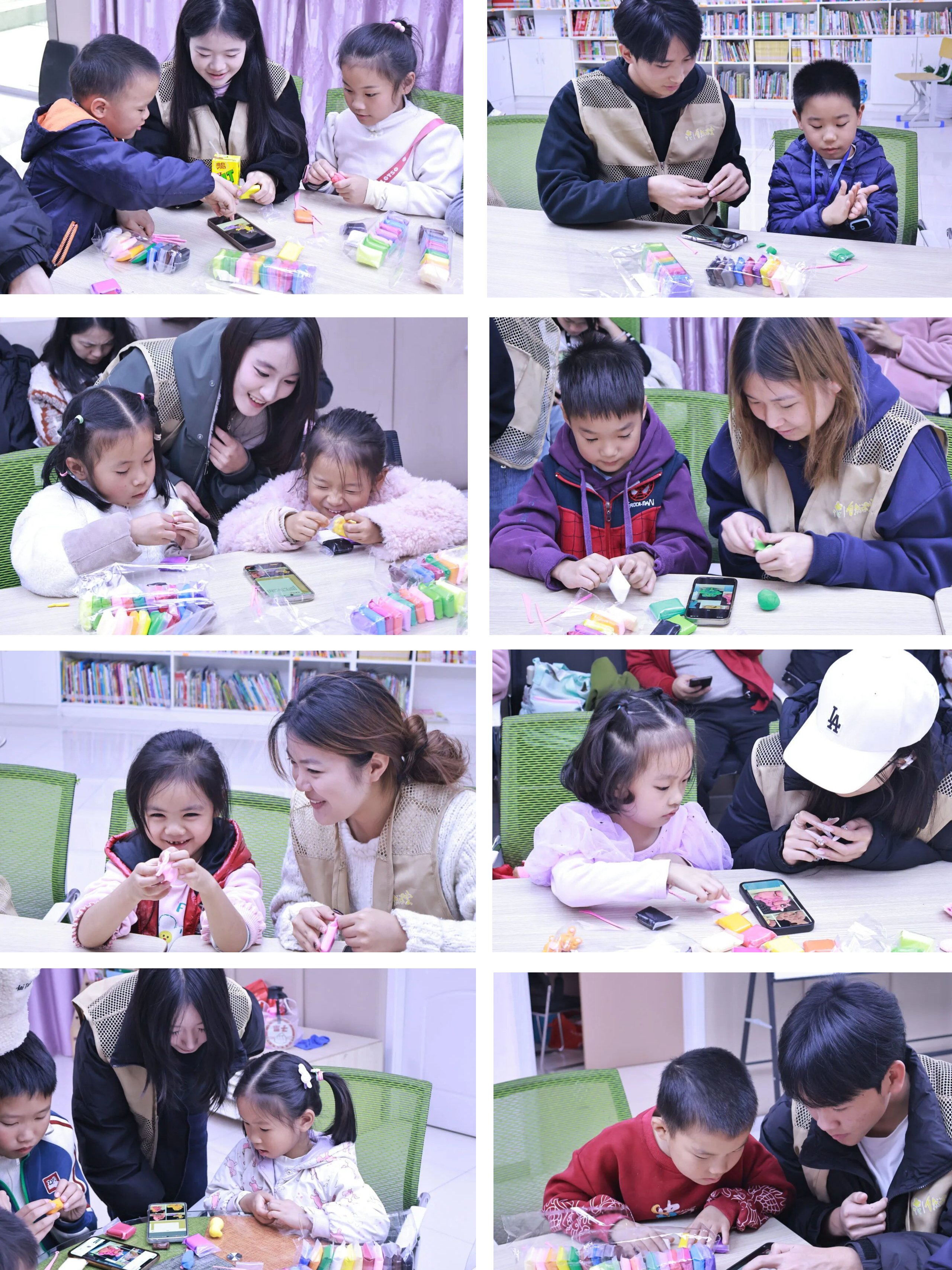 随后,充满趣味的“脊兽黏土”环节拉开帷幕。志愿者们把红、黄、灰等各色黏土分到孩子们手中,指尖还沾着黏土碎屑,就笑着指导:“先捏出小兽的身子,再慢慢刻鳞片哦!”孩子们立刻动起手,有的捏出威风的龙,举着作品说“这是带队的大哥哥”;有的专注捏着行什,边捏边念叨“要把它的小翅膀做出来,它是最调皮的小弟弟”;还有孩子对着黏土琢磨,把狻猊的头部捏得圆滚滚,得意地展示“看它吞云吐雾的样子多可爱”。制作时,孩子们不时互相递工具、提建议,笑声裹着黏土的淡淡香气飘满屋子,连阳光都似被这热闹暖得更柔了。