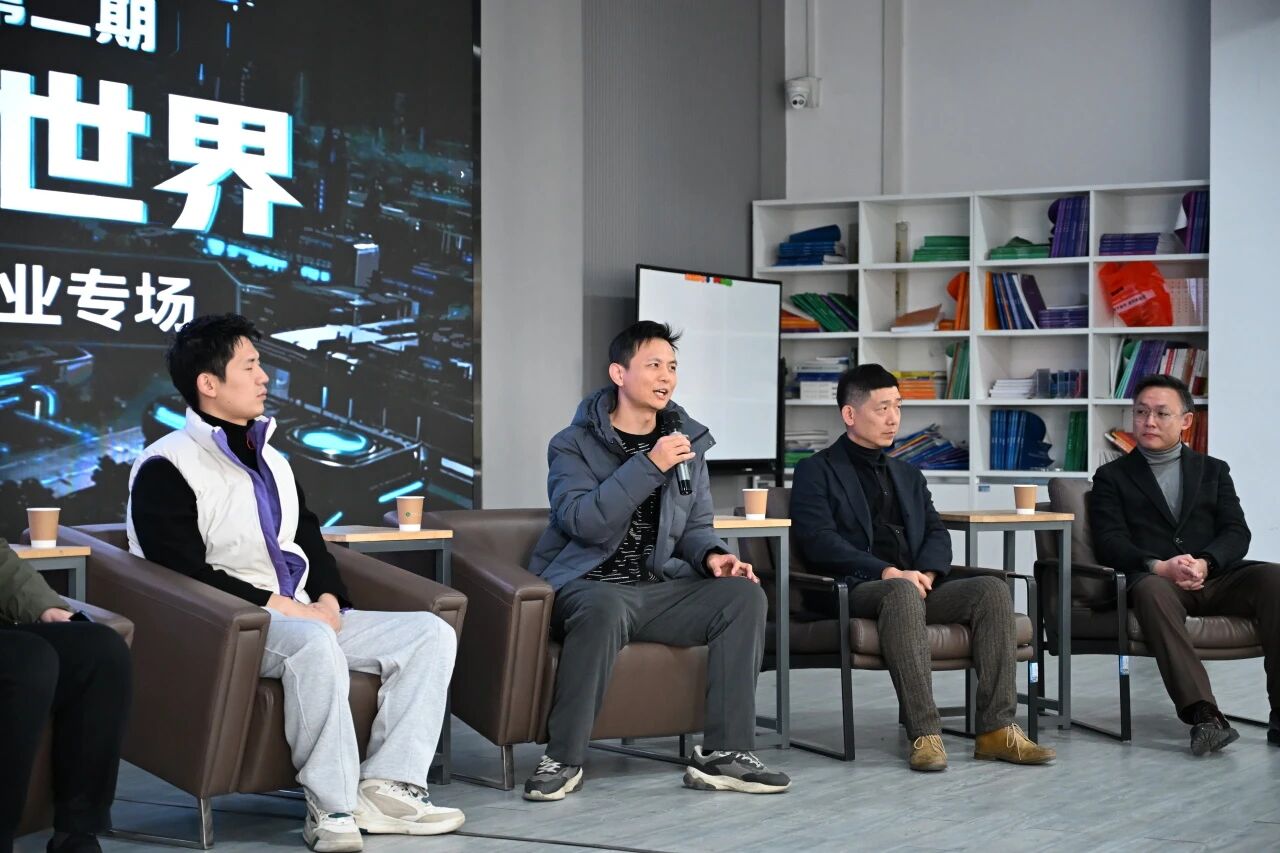 武汉天空盒产学研信息咨询有限公司 校企合作总监 陈骏飞;以及同样来自武汉天空盒产学研信息咨询有限公司负责游戏三维教研工作的薛新明老师。此外,我们还邀请到一位彩蛋嘉宾——武汉辰星动漫科技有限公司的张巍先生。虽然此次未正式入座嘉宾席,但他已是我们的老朋友,之前就曾走进公司,为老师们带来过干货满满的AIGC教学分享。这次他也来到了现场,一起听听聊聊,为这场跨界对话默默助力。