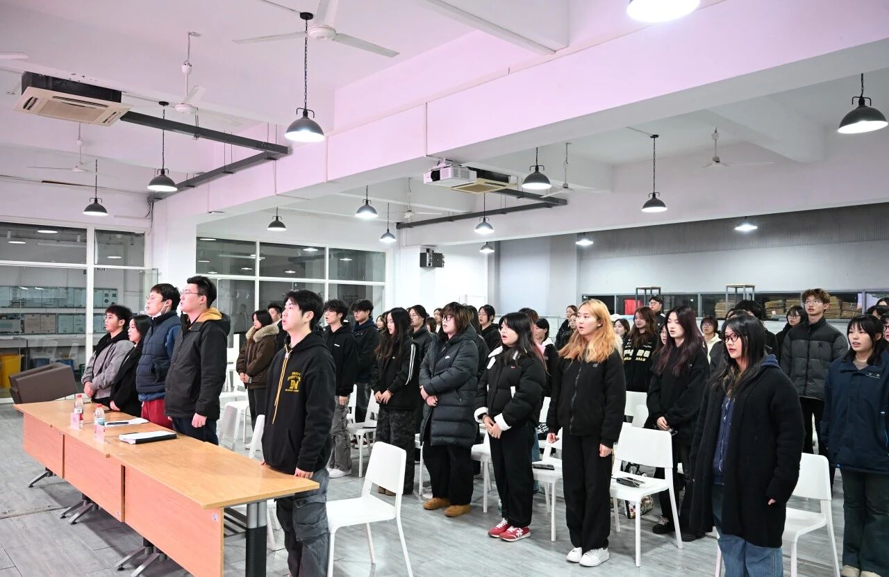 大会由分团委员工会工作人员李智宜、王思妍同学共同主持。伴随着上一届主席团成员精心录制的祝福视频,温暖的寄语拉开了大会序幕,传递着薪火相传的初心与期许。全体参会人员起立奏唱中华人民共和国国歌,庄严的旋律在会场中回荡,凝聚起青年学子的责任与担当。