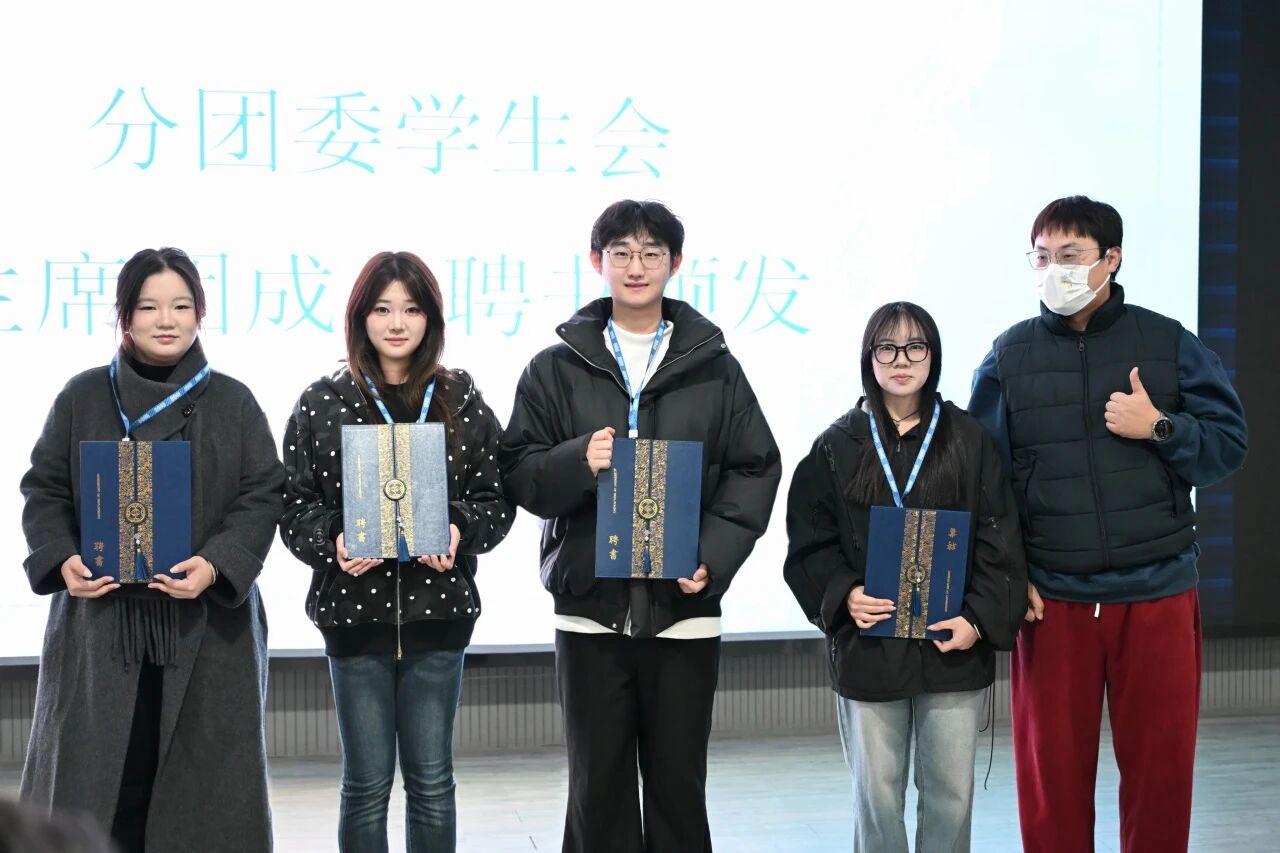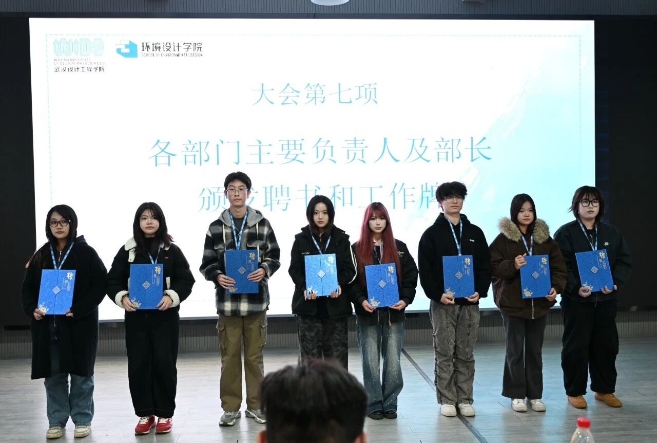 紧接着,主席团成员为各部门主要负责人颁发聘书与工作牌,各部门负责人尹籽月、王海壮、张程浩、邱爽、黄芷晗、徐瑞梓、唐生榆凡、肖佳琪等同学依次上台表态,纷纷表达了履职尽责、创新实干的坚定信心,展现出团结奋进的良好风貌。各部门负责人随后为部门成员颁发聘书及工作证,并合影留念,定格下这份责任与荣光。