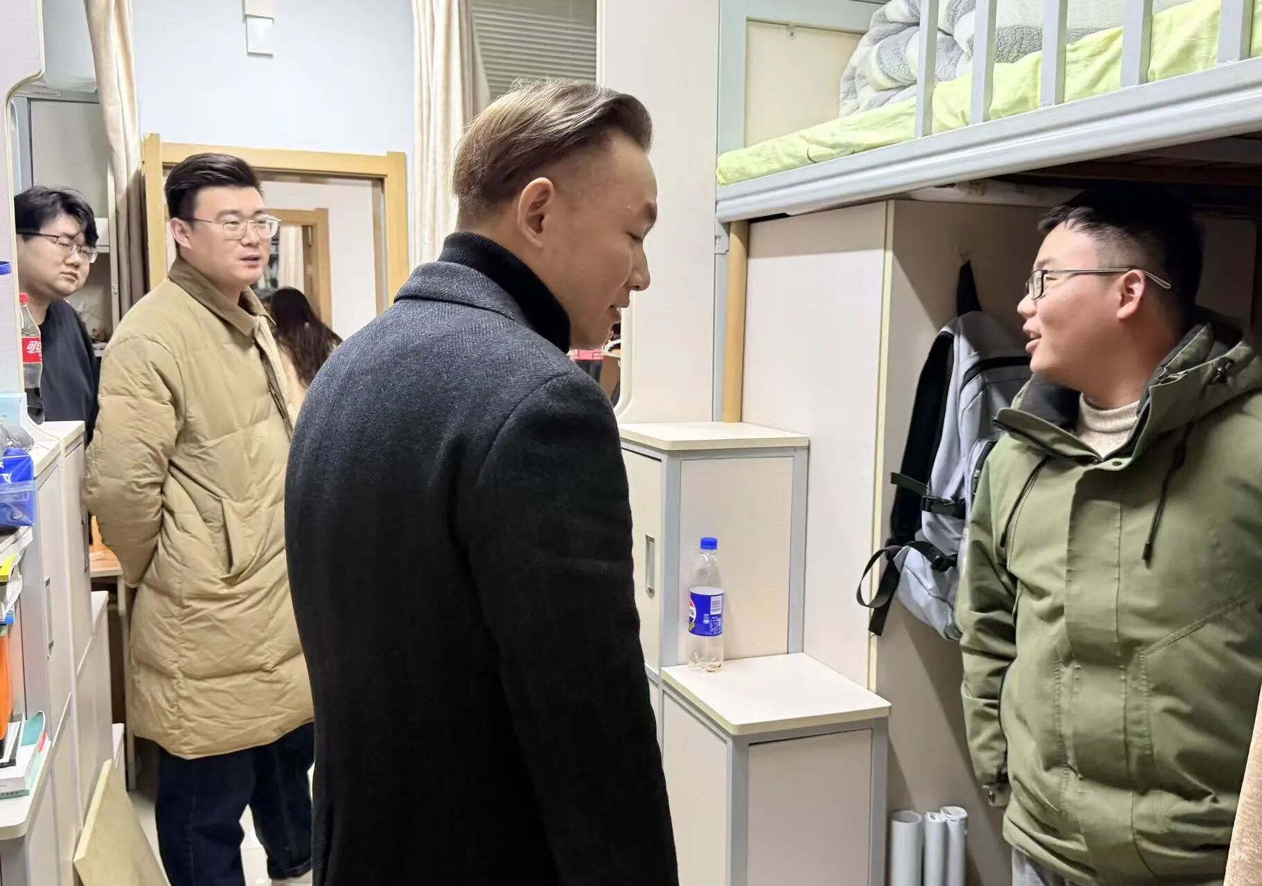 走访过程中,公司领导与辅导员走进员工宿舍,与同学们亲切交谈、嘘寒问暖,详细了解大家的返程情况、假期生活安排、实践经历、就业情况及新学期学习规划,认真倾听同学们在学习、生活上的意见和需求,对大家返校后的精神面貌给予肯定。