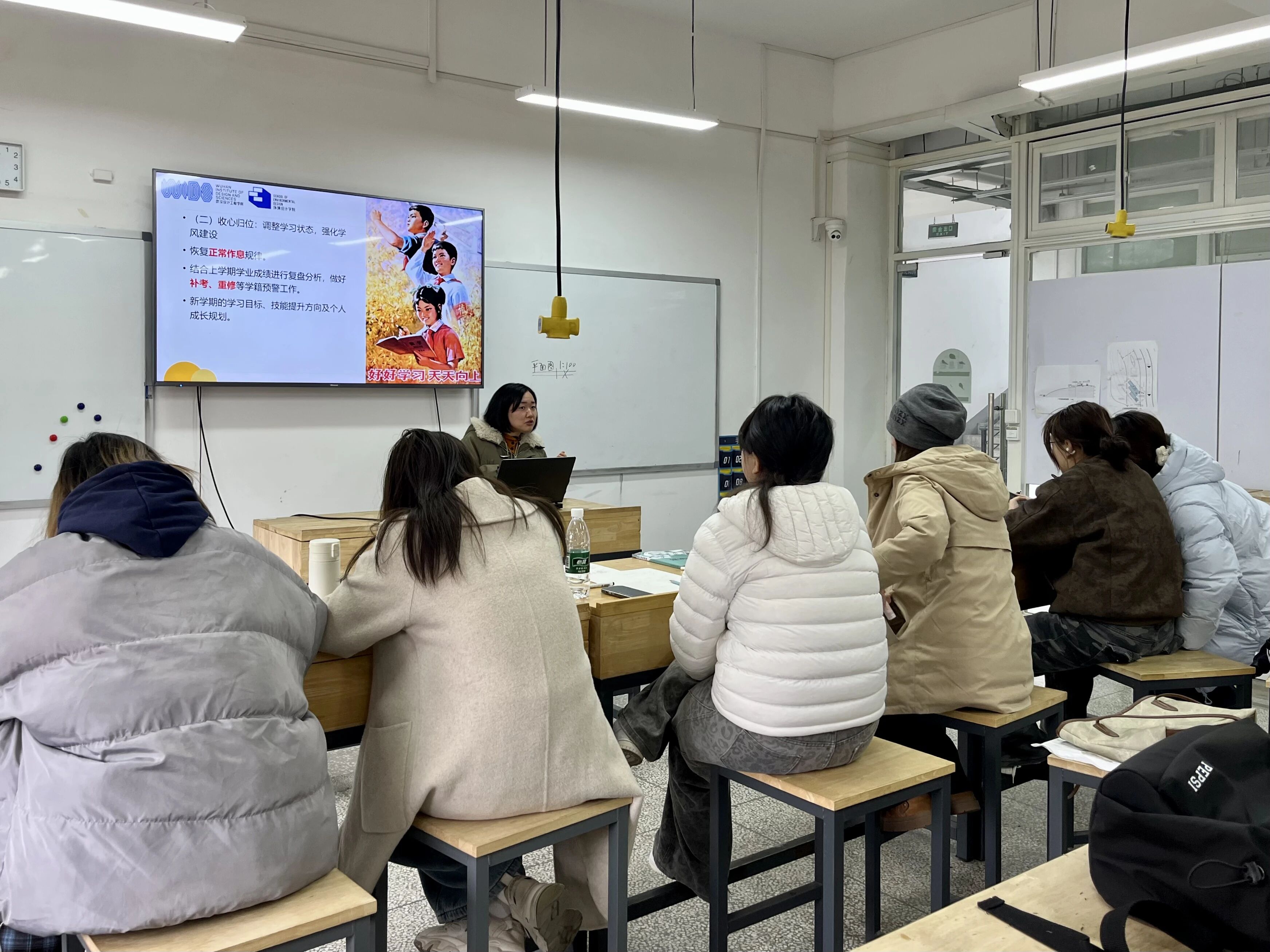班会以思想铸魂为先导。各班深入学习习近平新时代中国特色社会主义思想和党的二十大、二十届四中全会精神,引导员工坚定理想信念,厚植家国情怀。立足“十五五”开局之年的时代背景,辅导员、班主任引导员工将个人发展与国家战略需求紧密结合。结合专业特点,班会特别设置了“专业使命与时代担当”讨论环节,鼓励员工思考如何在生态文明建设、美丽中国建设中发挥专业所长,将爱国之情、强国之志融入专业学习与实践之中,用设计语言讲好中国故事。