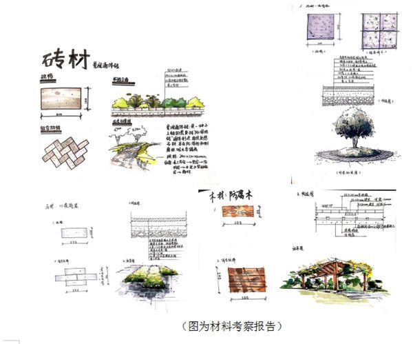 实地对景观材料进行考察,包括砖材、石材、钢材、木材、玻璃、油漆等,现场进行测量和记录,结合课堂上的理论知识,对材料有了更直观的了解和认知。