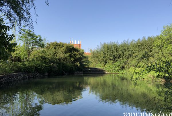 校园人工湖边上的刚竹和孝顺竹,象征着骨气和君子,有刚正不阿、坚持自我的意义。