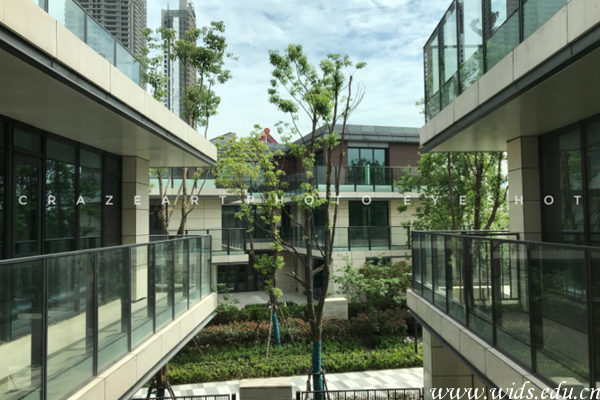 考察的第二天,我们来到了紧临东湖生态风景区的华侨城原岸进行考察。它是一个还在建设当中的居住区,三面环湖,空气与周边环境质量较好。里面的居住空间分为别墅和高层住宅。首先我们对不同户型别墅进行了考察,其中较大一栋别墅面积为560㎡,内部空间都比较开阔,可根据业主的不同的功能需要进行划分。为了更好的采光与开阔的视野,整栋别墅开窗较多,且开窗面积大,并且拥有自己独立的小花园。