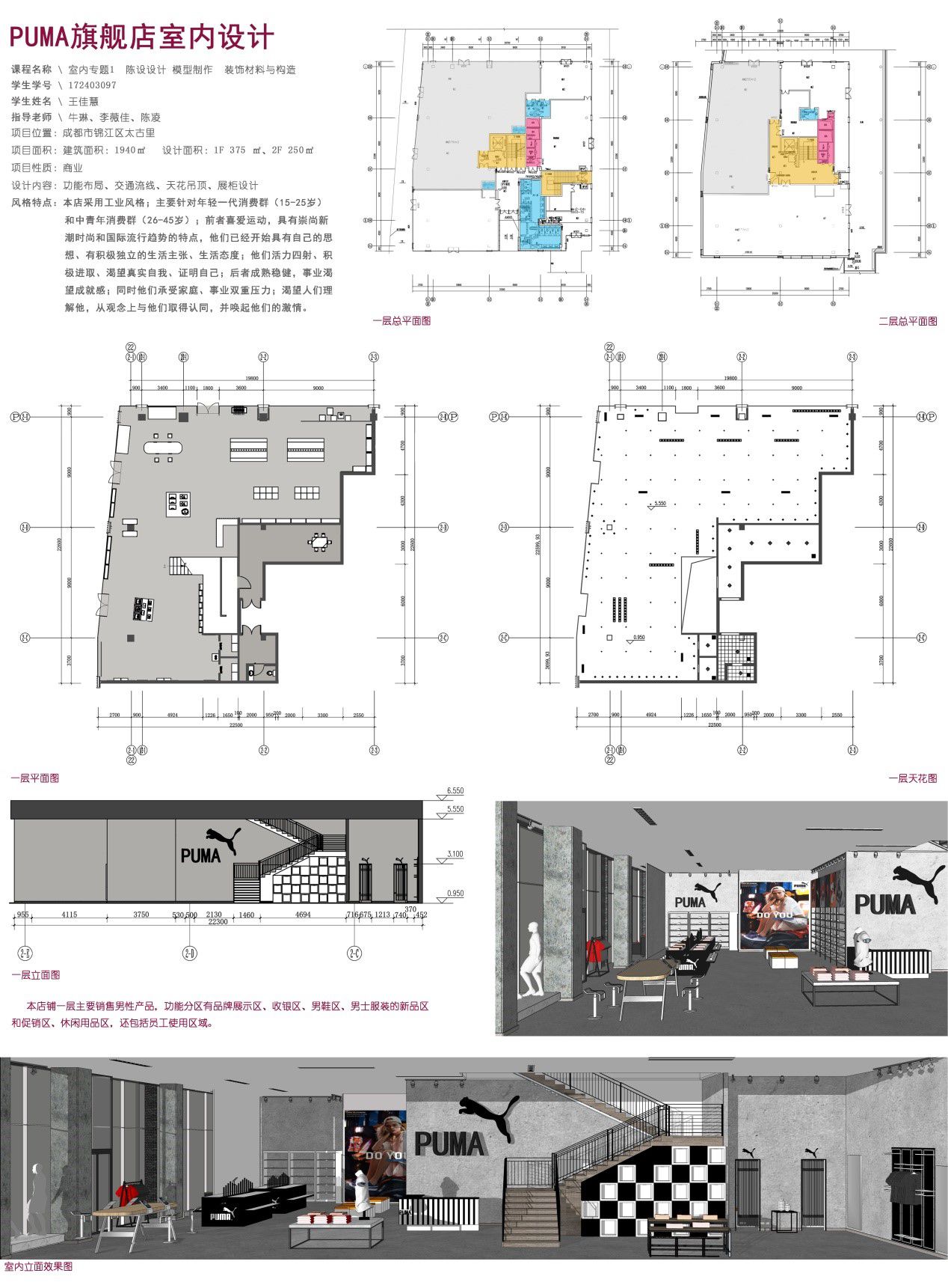 在17周的课程时间里,室内班的同学们通过完成室内专题I、陈设设计、模型设计、装饰材料与构造、课程项目实践2等课程的作业,在真实的建筑结构框架下考虑管线设备,进行室内装饰设计。