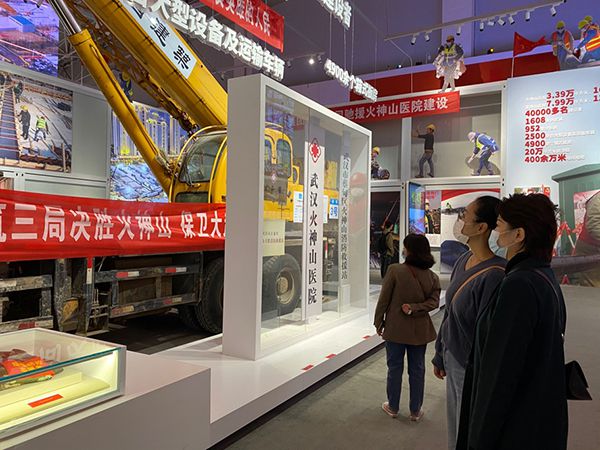 展览还实景还原了火雷神山医院建设现场。反光背心、安全帽、对讲机,这些援建过程中的实物都被收录到展馆內,一下子把大家带回到热火朝天、争分夺秒的施工现场。