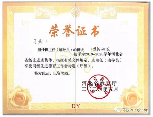 作为一名辅导员,热爱自己的本职工作,在工作中能够本着平等与尊重的原则面对每一位同学,真诚地对待每一位同学的每一份情感。在这种平等交流中,员工们能充分体会到老师的尊重,和员工们成为了朋友,建立起一种平等的、朋友间的师生关系。2020年5月,所带班级荣获省级先进班集体荣誉称号。