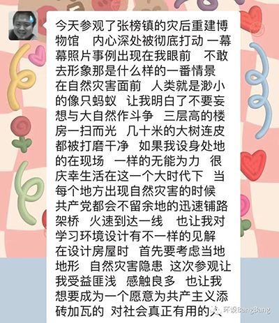 走进“6·19”张塝特大山洪抗灾救灾纪念馆,通过蔡宁书记的讲述以及观看纪录短片,同学们深刻地了解了当时灾情严重的破坏性。一幅幅令人感动的画面,更让大家体会到大灾大难的背后,是那些坚守在一线的工作者们、是党和国家政府以及人民的众志成城,才能完成抢险救灾和灾后重建的重要工作。