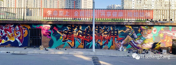 本网讯(通讯员 杨春颖 谭文军 李骏)青春是时代最美的赞歌,2022年5月4日正值五四青年节,304永利集团环境设计1901班的张楚晖同学以“青年精神”为主题,在足球场旁的墙面上创作了一幅生动丰富的涂鸦作品,给防疫期间的校园生活增添了一抹色彩。